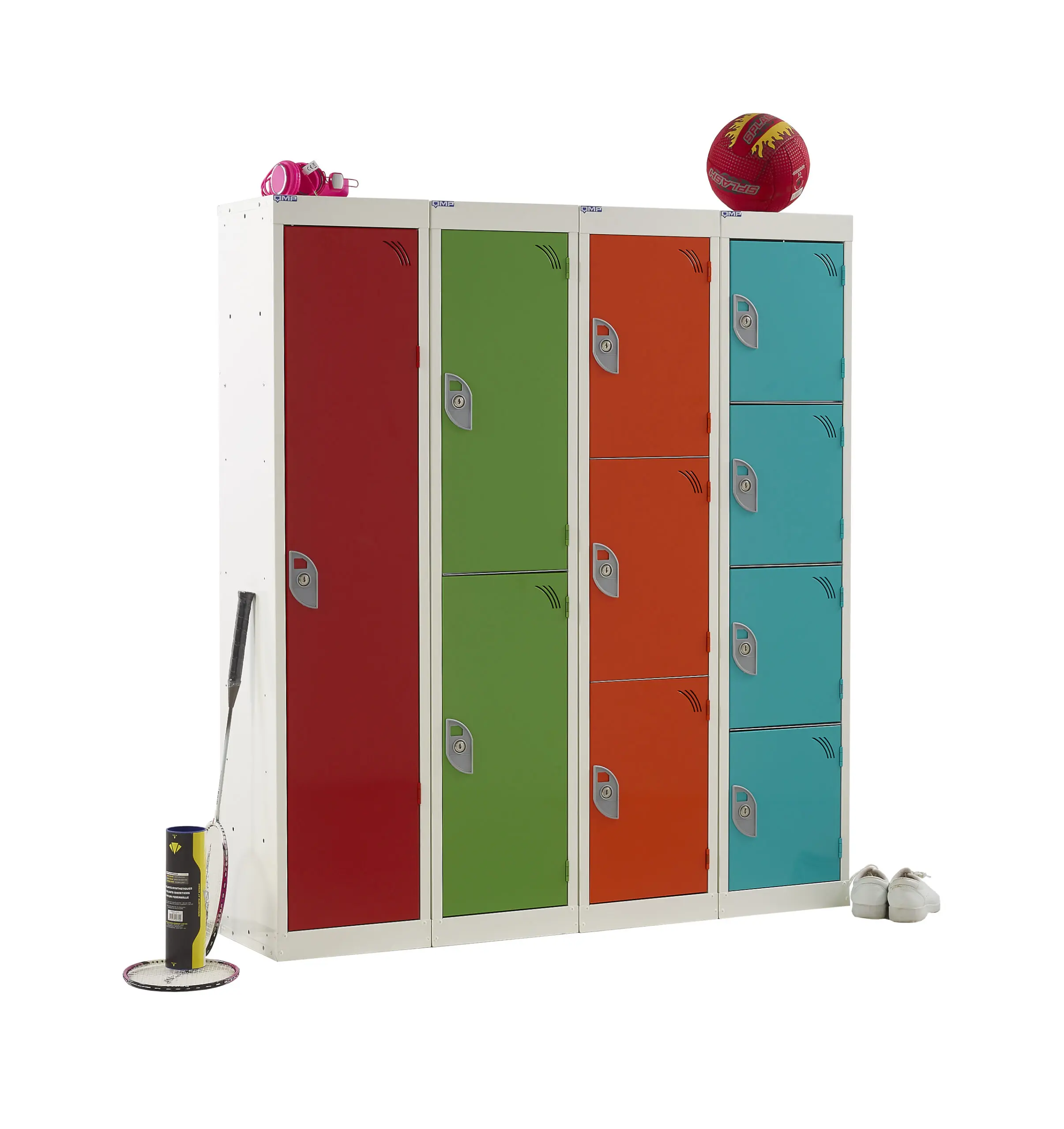 Bright Colourful Primary School Lockers are UK-manufactured, robust, and purpose-built for everyday school use. Ideal for classrooms, corridors, and cloakrooms, these steel lockers combine durability with vibrant colour options to brighten learning spaces.