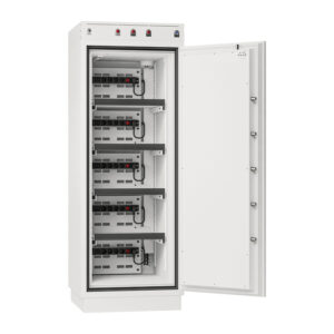 UNIT BS1945K/E/F Key locking/Electronic locking /Fingerprint locking, External Dimensions 1910 x 690 x 710mm Single battery capacity 2500Wh,Maximum capacity 12500Wh, Internal dimensions 1505 x 510 x 400mm, Door swing/Handle depth 650 /40mm, Weight 416kg ,Capacity 307 Litres, PDUs 5x (4 Gang),Shelves x 4, Doors x 1