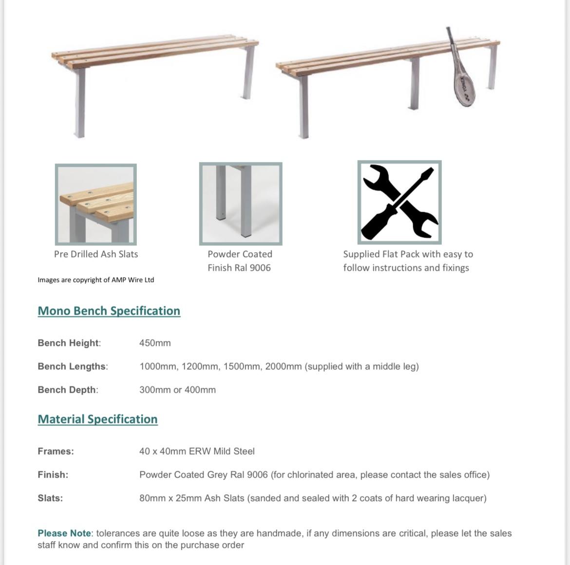 - Bench Lengths: 1000mm, 1200mm, 1500mm, 2000mm (supplied with a middle leg for added support)