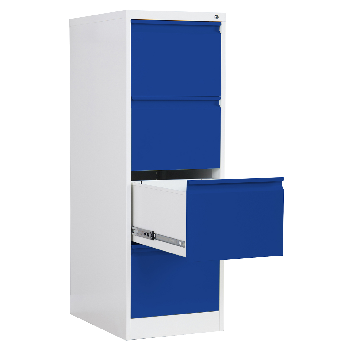 Robust Office Filing Cabinets with fast delivery for secure file and document storage for offices and busy workplaces are available in 1-3 working days complete with a peace of mind 5 years manufacturers warranty. Robust Powder coated steel cabinets with a choice of four different colours that would slot into any office home environment with 2 to 4 drawers with hanging bars in each drawer. Designed for file and document storage in busy workplaces. Despite their quick 1-3 day delivery, these cabinets maintain the same high standards of strength and quality. Each is secured with a cam lock and 2 keys .Delivered flat packed for easy self-assembly.