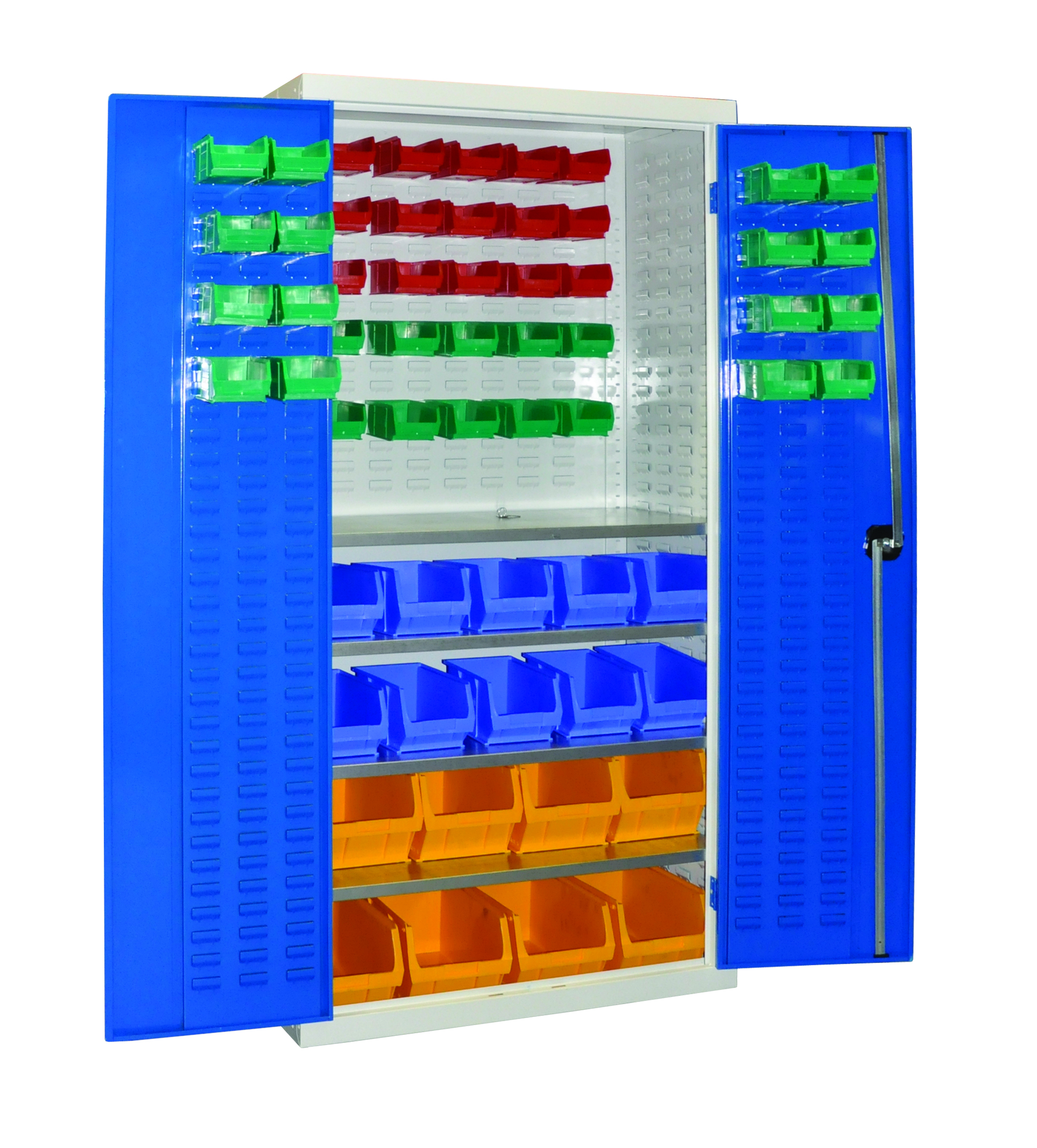 Parts Container Storage lockers offer the user a multitude of storage options. These heavy-duty cupboards are perfect for small parts storage or storage options in the industrial workplace. Louvre panels on the doors and carcass enable the user to conveniently store containers close to hand. These cupboards are available at H.1800 x W.900 x D.460 and are constructed with a weld & rivet framework providing the user with all-around robustness.