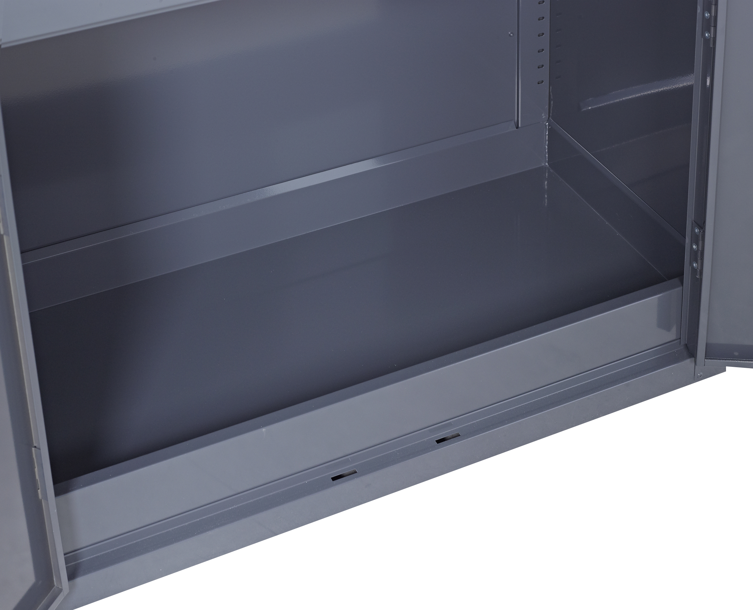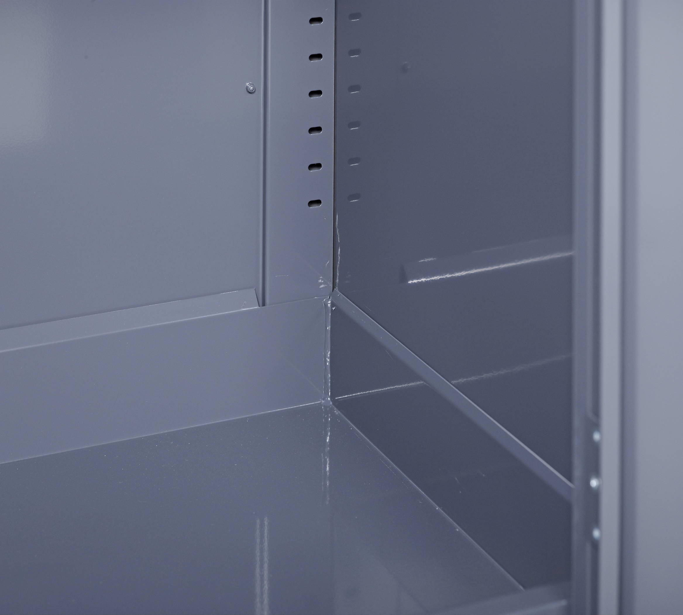 • Adjustable spill-retaining galvanised shelves for superior spill management with a UDL of 50 kg.