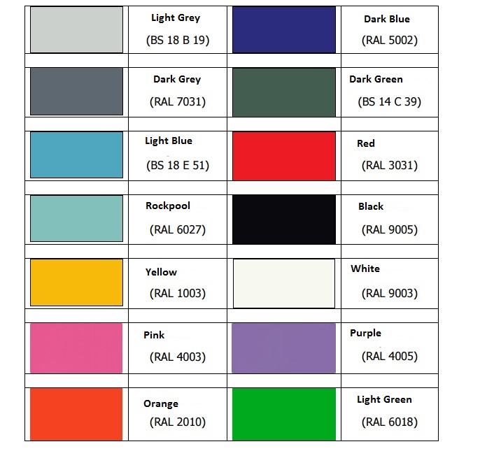 Available in a large choice of powder coated colours (See images)